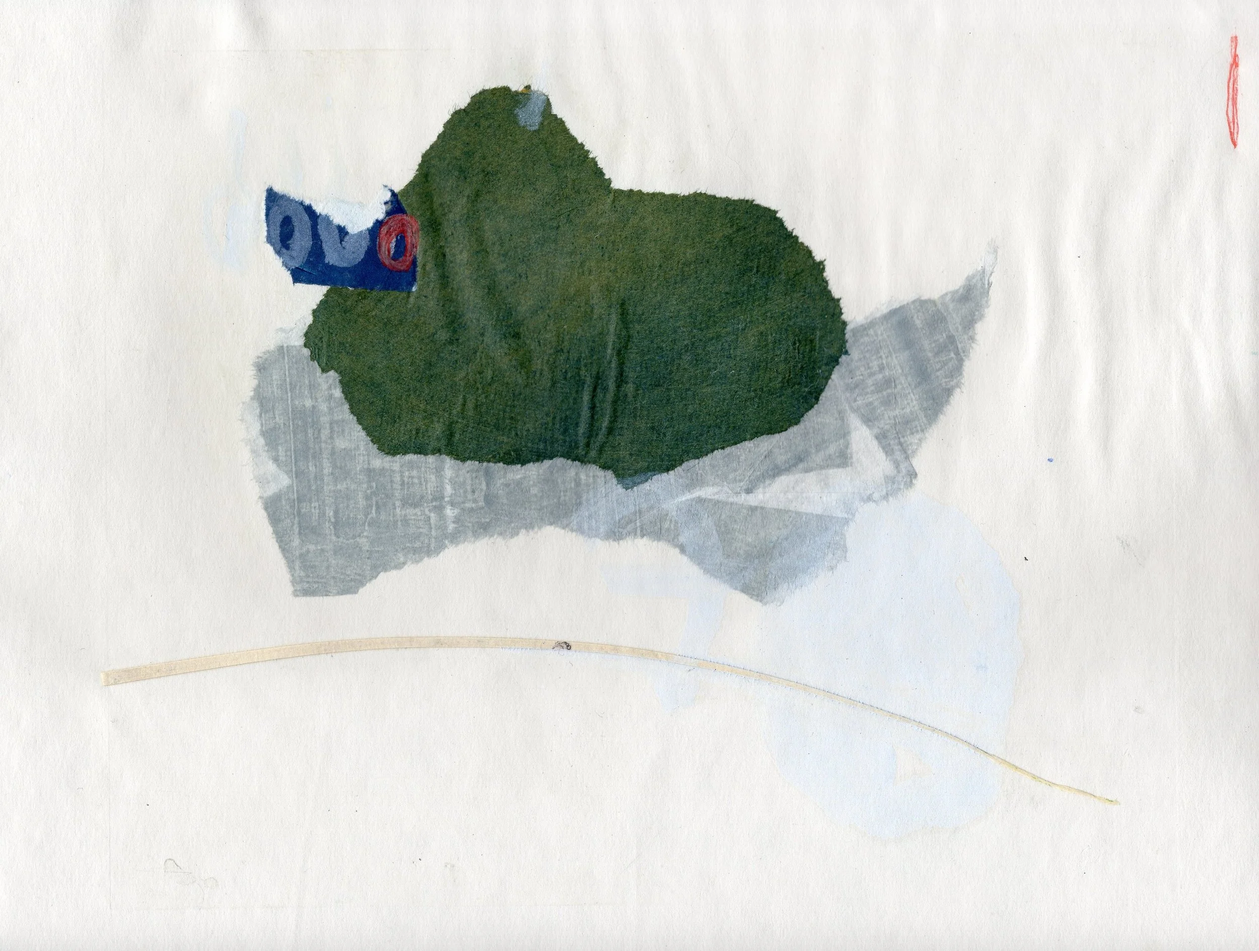 Chine-colle, monoprint, colored pencil.