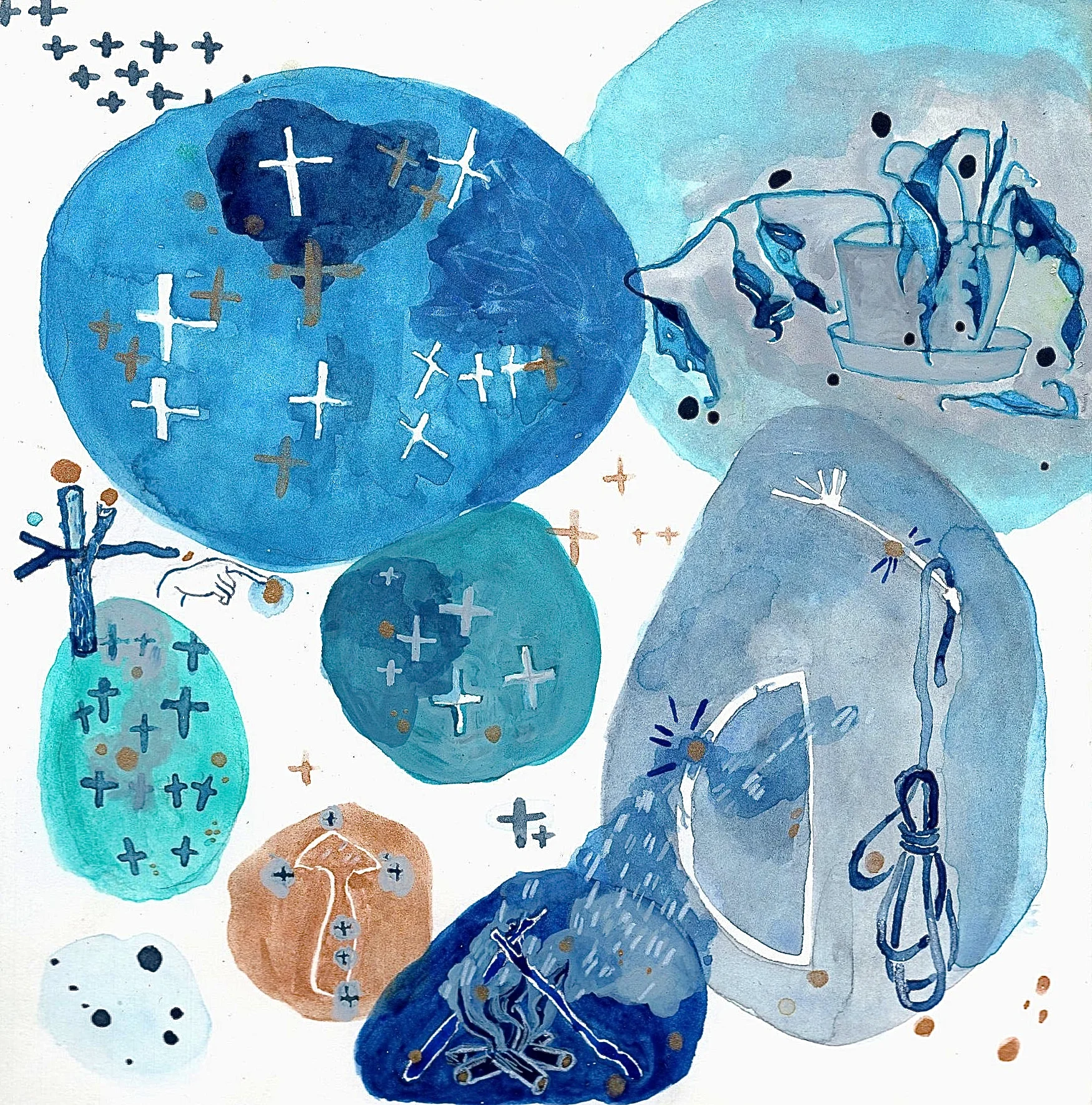 The withered leaves; the cookfire; the burning bow; the agaric and the first disembodied marker.